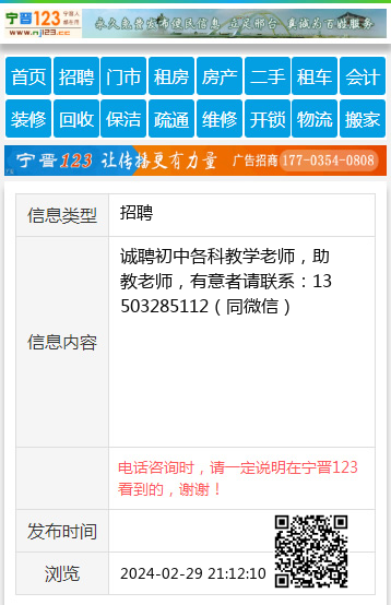 免责声明:本栏目信息由网友自行发布,宁晋123不承担任何责任!提高警惕,谨防诈骗!做推广、做信息置顶!请加宁晋123客服微信:ningjin009