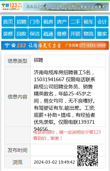 济南电缆库房招聘普工5名,15031941667 仅限电话联系。