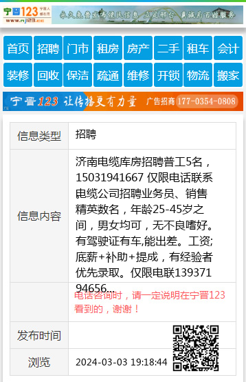 | 防骗提醒: | 宁晋123(www.nj123.cc)提醒您:手工活、网络兼职、刷单,都是骗子!凡以各种名义收取费用的都是骗子!找工作是往兜里挣钱,让你往外掏钱的都是骗子!异地招聘请提高警惕,谨防诈骗! |