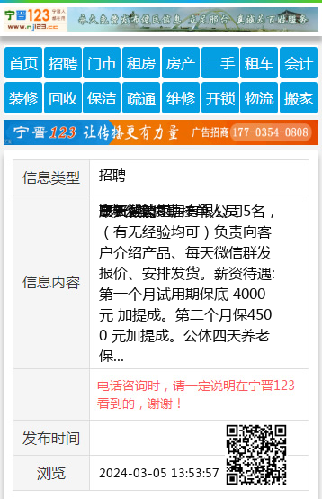 | 防骗提醒: | 宁晋123(www.nj123.cc)提醒您:手工活、网络兼职、刷单,都是骗子!凡以各种名义收取费用的都是骗子!找工作是往兜里挣钱,让你往外掏钱的都是骗子!异地招聘请提高警惕,谨防诈骗! |