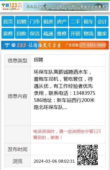 环保车队高薪诚聘洒水车,雾炮车司机,管吃管住,待遇从优,有工作经验者优先录用,联系电话:13483975586地址:新车站西行200米路北环保车队 【电话咨询时,请一定说明在宁晋123看到的,谢谢!】 |