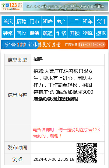 招聘:大曹庄电话客服只限女生,要求有上进心,团队协作力,工作简单轻松,招周边村庄