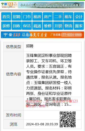 玉锋集团淀粉事业部现招聘装卸工、叉车司机、环卫等人员。要求:五官端正,有专业操作证者优先录取,待遇优厚,报名从速。报名地点:玉锋集团研发楼一楼人力资源部。报名材料:彩照两张、身份证和毕业证原件+复印件。报名表求职意向写二园区。咨询电话:15075993641 【电话咨询时,请一定说明在宁晋123看到的,谢谢!】 |