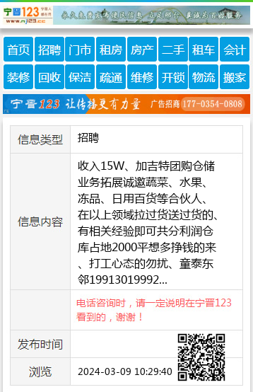 收入15W、加吉特团购仓储业务拓展诚邀蔬菜、水果、冻品、日用百货等合伙人、在以上领域拉过货送过货的、有相关经验即可共分利润仓库占地2000平想多挣钱的来、打工心态的勿扰、童泰东邻19913019992 【电话咨询时,请一定说明在宁晋123看到的,谢谢!】 |
