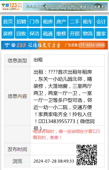 出租:????首次出租年租房,东关一小幼儿园北邻,精装修,大落地窗,三室两厅两卫,两室一厅一卫,一室一厅一卫等多户型可选,邻近一幼一小二院,交通方便!家具家电齐全!拎包入住!☎️13483955773(微信同号) 【电话咨询时,请一定说明在宁晋123看到的,谢谢!】 |