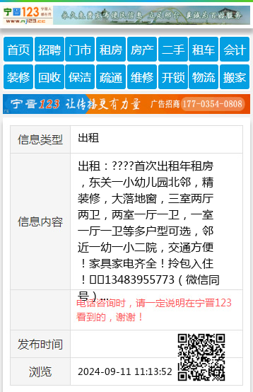 出租:????首次出租年租房,东关一小幼儿园北邻,精装修,大落地窗,三室两厅两卫,两室一厅一卫,一室一厅一卫等多户型可选,邻近一幼一小二院,交通方便!家具家电齐全!拎包入住!☎️13483955773(微信同号) 【电话咨询时,请一定说明在宁晋123看到的,谢谢!】 |