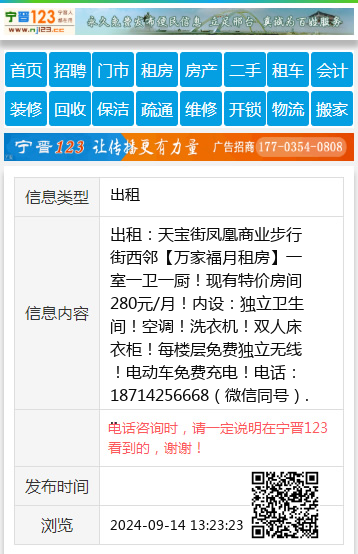出租:天宝街凤凰商业步行街西邻【万家福月租房】一室一卫一厨!现有特价房间280元/月!内设:独立卫生间!空调!洗衣机!双人床衣柜!每楼层免费独立无线!电动车免费充电!电话:18714256668(微信同号) 【电话咨询时,请一定说明在宁晋123看到的,谢谢!】 |