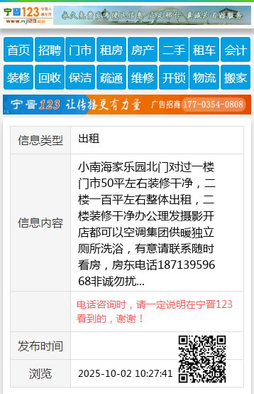 小南海家乐园北门对过一楼门市50平左右装修干净,二楼一百平左右整体出租,二楼装修干净办公理发摄影开店都可以空调集团供暖独立厕所洗浴,有意请联系随时看房,房东电话18713959668非诚勿扰 【电话咨询时,请一定说明在宁晋123看到的,谢谢!】 |