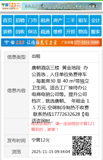 唐朝酒店三楼 黄金地段 办公首选,入住单位免费停车,每套房30 至 40 m²带独立卫生间。适合工厂接待办公电商电销公司等。提升公司档次,就选唐朝。 年租金 1.5 万元 空调制冷制热不收费 联系热线17772632628 【电话咨询时,请一定说明在宁晋123看到的,谢谢!】 |