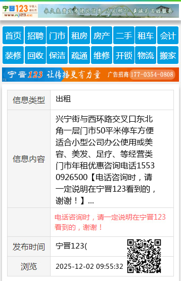 兴宁街与西环路交叉口东北角一层门市50平米停车方便适合小型公司办公使用或美容、美发、足疗、等经营类门市年租优惠咨询电话15530926500 【电话咨询时,请一定说明在宁晋123看到的,谢谢!】 |