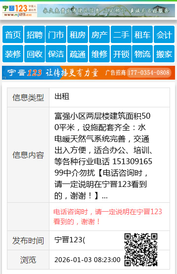 富强小区两层楼建筑面积500平米,设施配套齐全:水电暖天然气系统完善,交通出入方便,适合办公、培训、等各种行业电话 15130916599中介勿扰 【电话咨询时,请一定说明在宁晋123看到的,谢谢!】 |